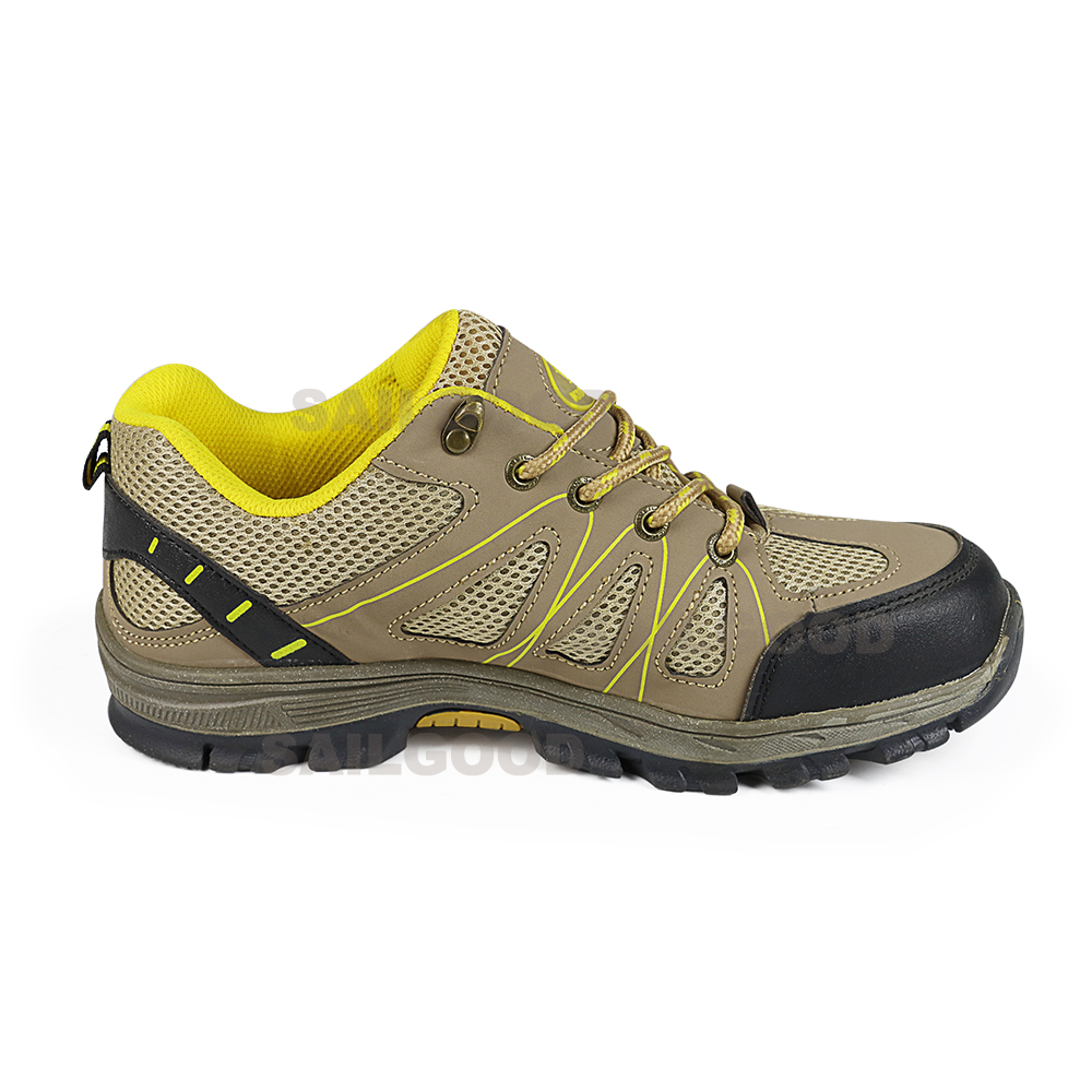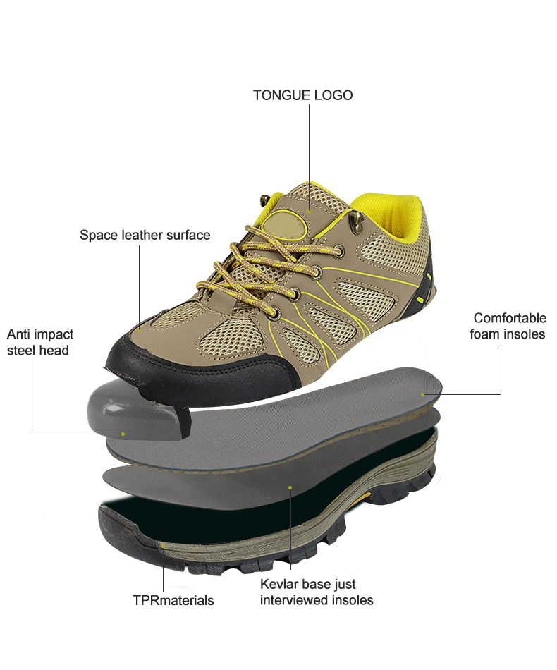 Durable yellow safety shoes with space leather & mesh, TPR sole, steel toe and anti-puncture plate for full protection.