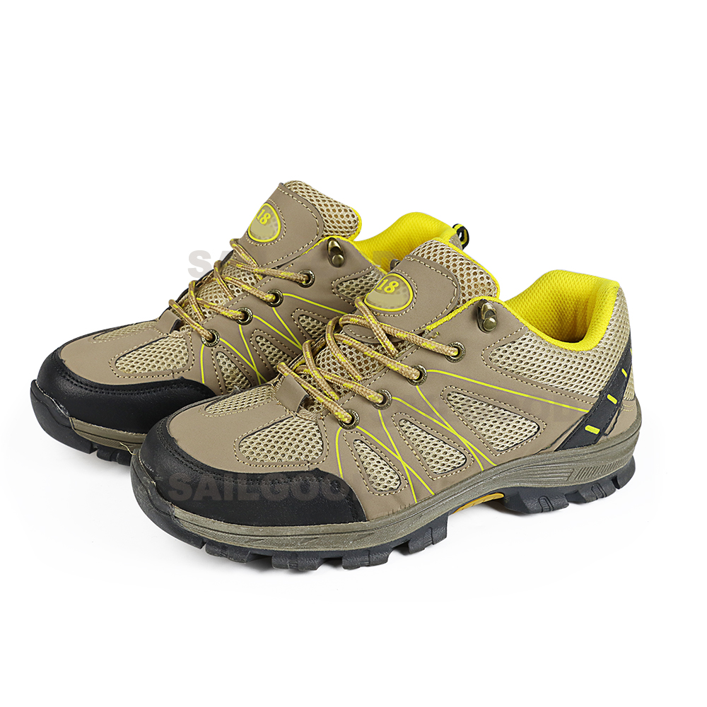 Model 818 yellow safety shoes feature a space leather surface combined with breathable mesh for comfort and ventilation. The TPR sole ensures durability and slip resistance. Equipped with a certified steel toe cap and anti-puncture steel plate, these shoes provide reliable protection against impacts and piercing hazards in construction, industrial, and warehouse environments. Available in sizes 35–45, they are ideal for all-day use in demanding workplaces.