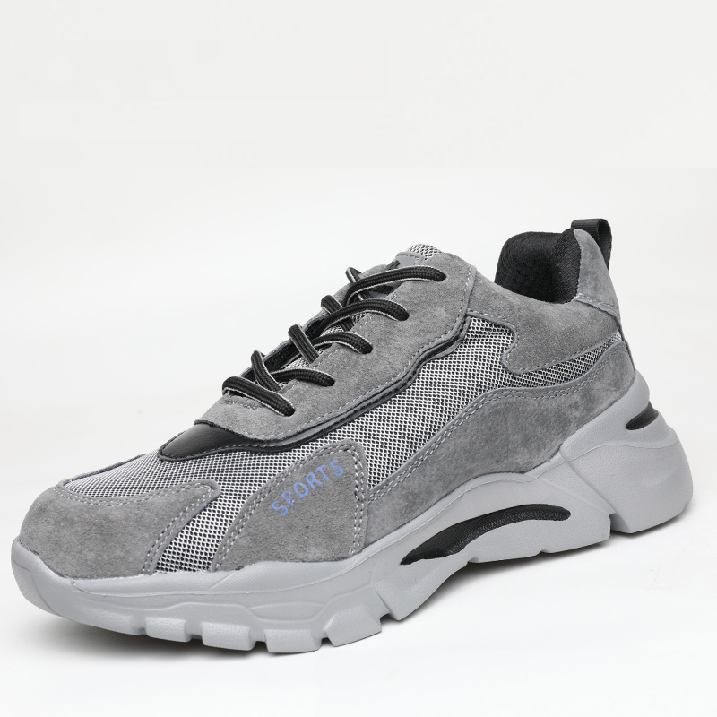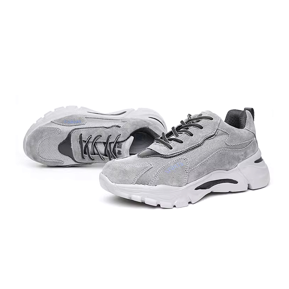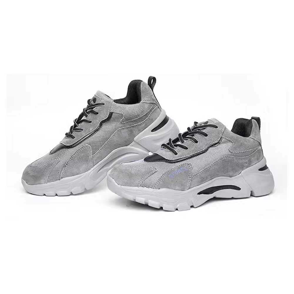 Available in full sizes from 36 to 46, these grey-black safety shoes fit most foot types and offer a secure, comfortable fit for daily industrial use.