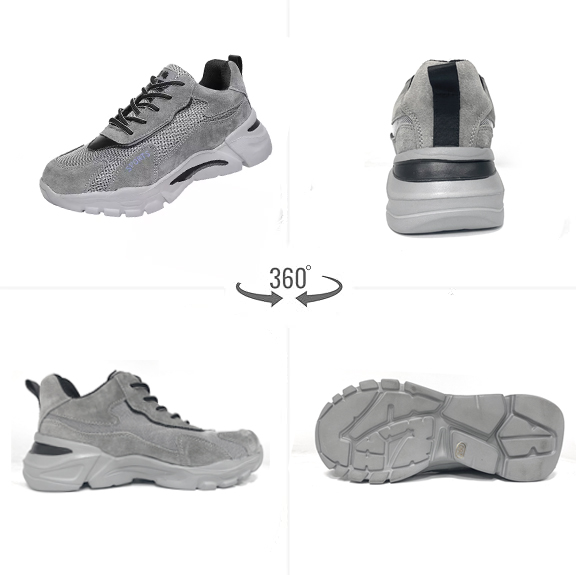 Model 2158 grey-black safety shoes integrate breathability, all-round protection and lightweight comfort, suitable for construction, workshops, warehouses and various industrial workplaces that require insulation, anti-smash and anti-stab protection.