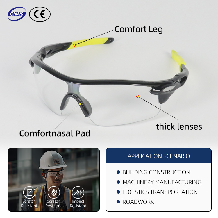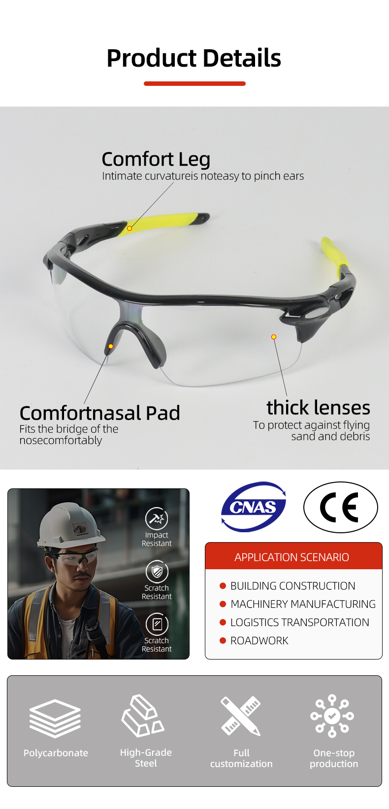 Model 00918 white safety glasses are made of high-quality polycarbonate (PC) and designed to protect eyes from fog and UV rays. Lightweight, durable, and comfortable, they are ideal for industrial, laboratory, and outdoor work, providing clear vision and reliable eye safety in harsh environments.